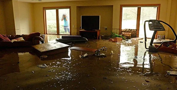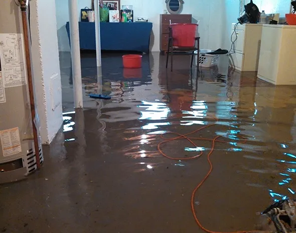 Basement floods after heavy rain. We offer 24/7 emergency water restoration to remove water and prevent mold damage quickly.
