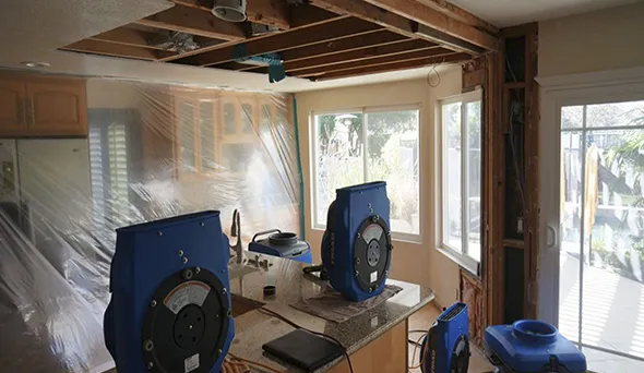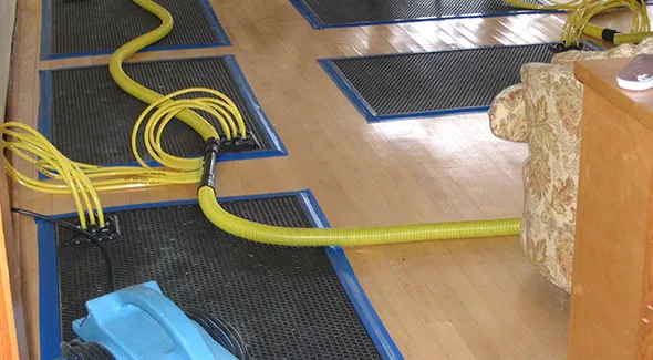 We use dehumidifiers and fans to dry out the wet areas. This stops moisture from causing more damage or mold.